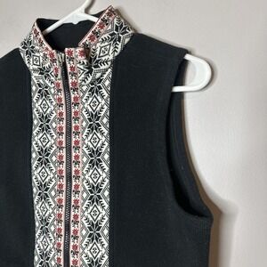 LL Bean Vest Nordic Fleece Snowflake Fair Isle Classic Black Knit Warm Outdoors