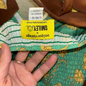 NWOT Unique Vintage Green Floral Retro Pinup Peplum Halter Blouse Top