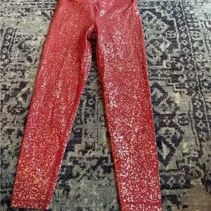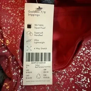 NWT- Sweaty Betty 7/8 Goddess Yoga Leggings Red Terrazzo Disco Foil Print Sz S