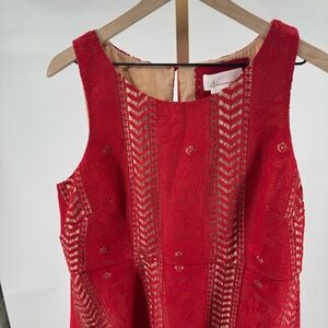 Anthropologie Georgia Vibrant Red Crochet Lace Circle Dress Size 14