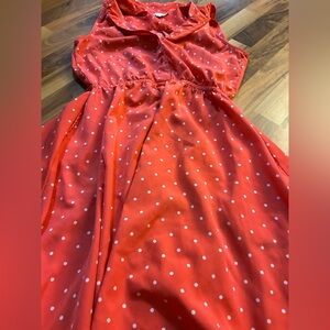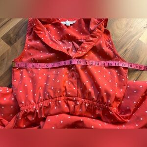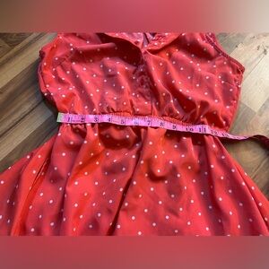 Vibrant pink dress with playful white polka dots. Sleeveless design for casual outings.