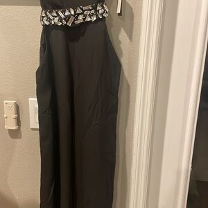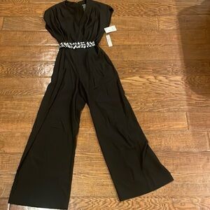 NWT BISOU BISOU Womens Black Wide Leg Jumpsuit Size 4 w Faux Gemstone Belt