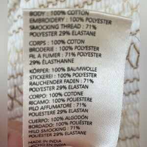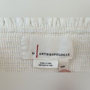Anthropologie Cream Smocked Embroidered Puff Sleeve Square Neck Top; size XSP