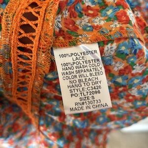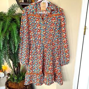 Brand New Umgee Floral Long-Sleeved Button Down Dress Crochet Trim Collared Mini