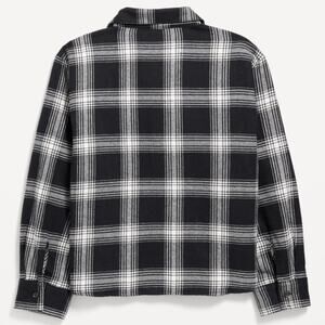 Old Navy black plaid Cropped Long Sleeve Plaid Pocket Flannel Shirt