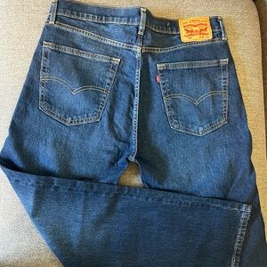 Levi's straight jeans in a deep blue shade.