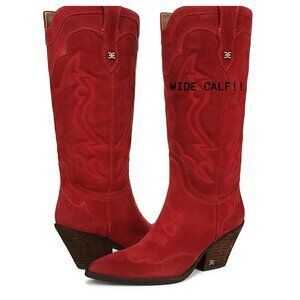 Sam Edelman James Western Boots Red Suede WIDE CALF 9