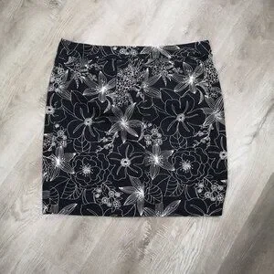 Encore Ladies Size 18 Black & White Flower Patterned Straight Fit Skirt