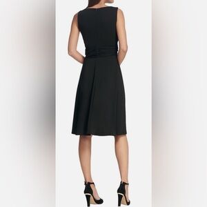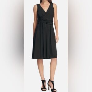 NWT - DKNY V-neck Side-twist Jersey A-Line Dress in Black - Size 16