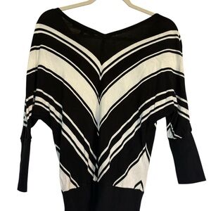 Elegant V-neck sweater with bold chevron pattern. Soft fabric and stylish design. Great preowned condition. See fabric photo.