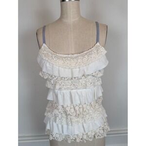Hollister Lace Ruffle Cami Top XS Ivory Boho Tiered Cottagecore Boho Festival