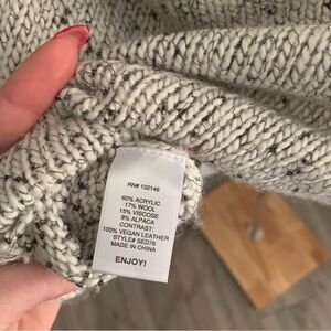 Michael stars wool alpaca chunky knit speckled zip up back sweater cream grey