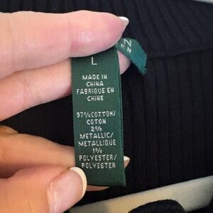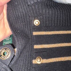 Lauren Ralph Lauren Black and Gold Striped Cowl Neck Sweater
