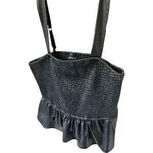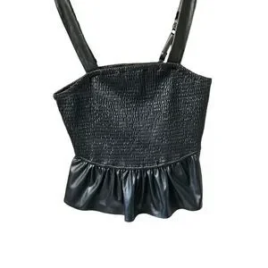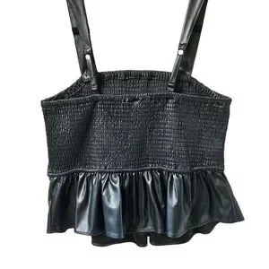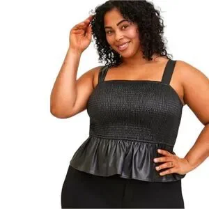 TORRID BlackβPeplum Fauxe Leather Crop Smocked Tank Top Classic Preppy 1X