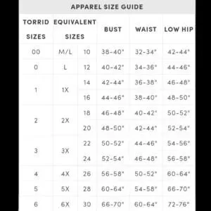 TORRID SIZE 1=1X Bust: 36" & Cropped length: 23.5" I'll measurements are approximate. I do not accept returns for approximate measurements Thank you π
