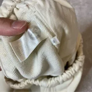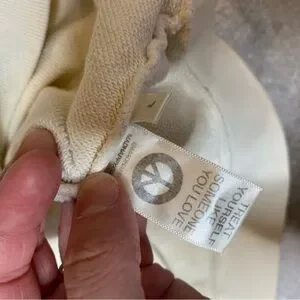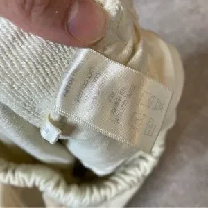 Sweatshirt size large and sweatpants size medium. Light spots on the back legs of the pants and faint mark on the top. Heavyweight material but comfortable. Matching set.