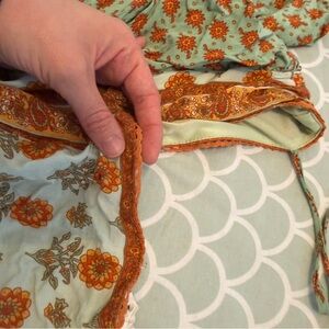 Beautiful color, little lace detail, tie back, puff sleeves, folk art print, milkmaid, cottagecore