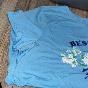 NWT light blue with metallic accents. Sewn cuffed sleeves, scoop neck, scooped bottom hem. Fun Disney t-shirt with 'Best Buds' design. Soft and comfortable.