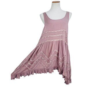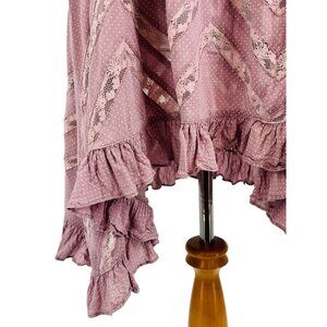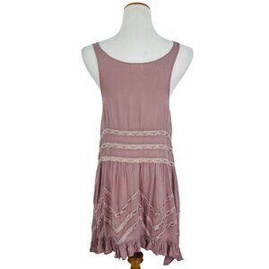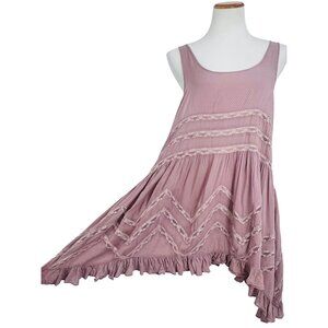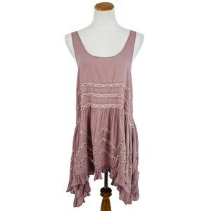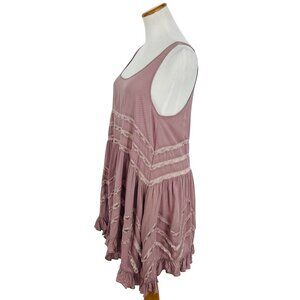 Free People Pink Tiered Ruffle Hem Voile & Lace Mini Polka Dot Tunic Mini Slip Dress