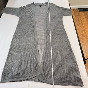 Torrid Gray Pointelle Open Front 3/4 Sleeves Duster Cardigan Sweater Size 3X