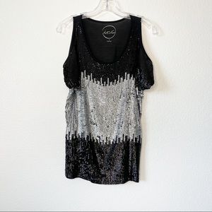 INC International Concepts Cold Shoulder Sequin Top