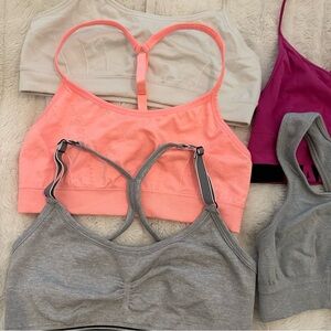Five great, used condition sports bras. All unique, soft and in good shape.
