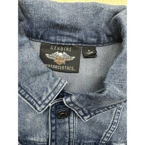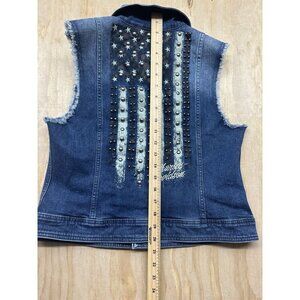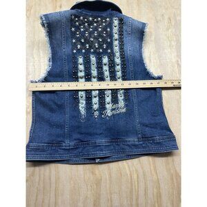 Harley-Davidson Women’s Sz M Flag Studded Distressed Denim Vest Moto Biker