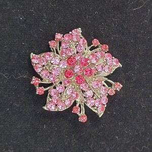 Vintage Floral Flower Brooch Pin Pendant Pink Purple Rhinestone Silver Tone