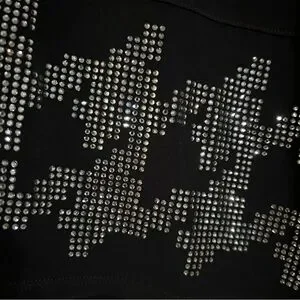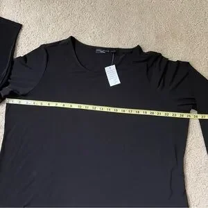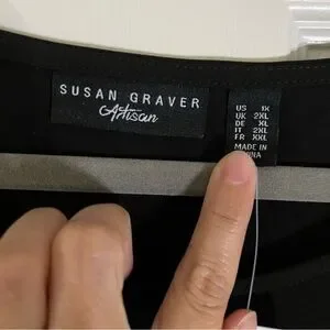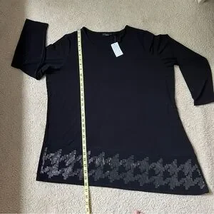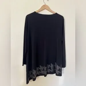 Susan Graver Artisan 1X Black Long Sleeve Asymmetrical Hem Tunic Top Rhinestone