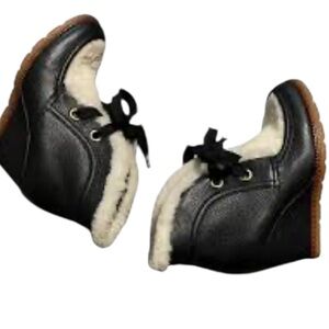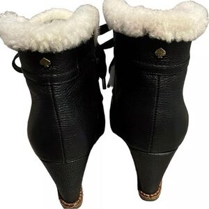 Kate Spade NY Sandy Leather Wedge Ankle Boots Black Shearling SZ 7.5 NWOB