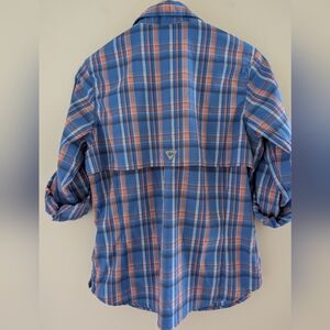 Columbia PFG Omni-Shade Long Sleeve Shirt Women's M Blue Coral Pink Plaid