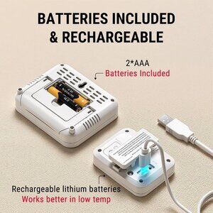 Considerate Power Design Receiver runs on 2 AAA batteries , while transmitter uses a rechargeable lithium battery designed to perform reliably in low-temperature environments Flexible & Wire-Free Placement Hook, stand, or magnet for the receiver. Clip