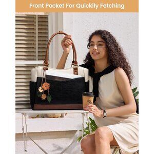 【One Bag Fits all Occasion】The elegant and unique design makes the tote bag very suitable for work, office, meeting, business trip, travel, coffee shop and other places as women's briefcase, teacher's handbag purse, computer tote bag or women's messenger bag. Simple color matching are easy to match with various clothing styles.