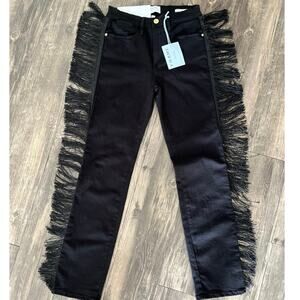 NWT FRAME Le High Straight Black Fringe Jeans Sz 27 Luxury Denim Edgy Western