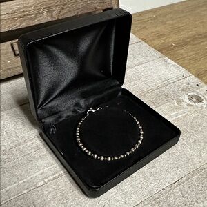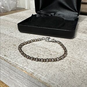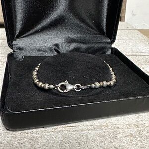 Authentic great shape Sterling silver 925 Italy great shape stamped two tone gold beaded solid well made clasp bracelet with gift box. 7”