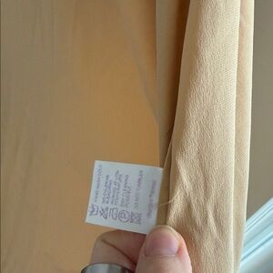Dry cleaning only (it has a very tiny transparent spot very up to the neck area it’s from foundation it will be removed once cleaned!