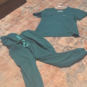 Figs Hunter Green Like New Size Large With Jogger Pants Scrub Set