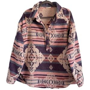 Kori Cabin-core Southwestern Button Down Shirt With Pink, Purple,and Cream Cozy