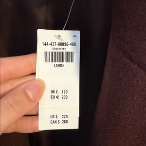 New with tags and never worn classic coat in deep chocolate brown from Abercrombie.