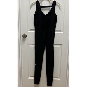 Fabletics Black Ribbed V Neck Cutout Back Athleisure Jumpsuit Leggings