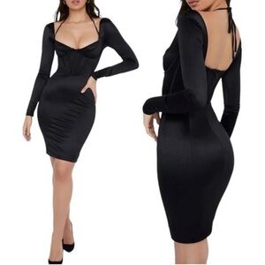HOUSE OF CB 'Grazia' Black Disco Satin Corset Dress