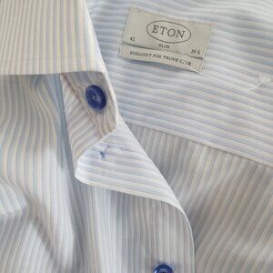 Eton Dress Shirt Mens16.5 42 SLIM FIT Blue striped & buttons Trunk Club RARE