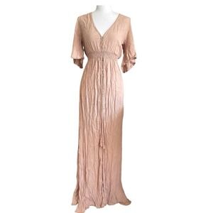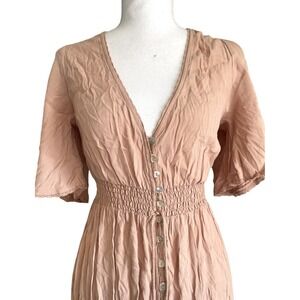 NWT Forever 21 Smocked Peach Maxi Dress Button Detail Cottagecore Prairie Church