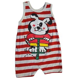 Vintage Osh Kosh B'Gosh Sleeveless Red/White Stripe Dog Short Romper 24M