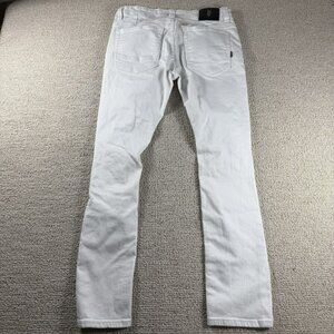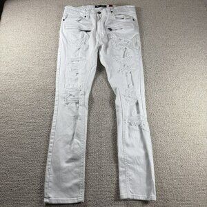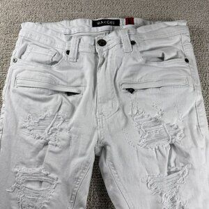 Makobi White Distressed Slim Fit Denim Jeans White Zip Men’s Size 36 x 32