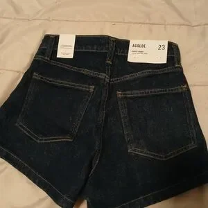 Chic and versatile jean shorts by Agolde. Deep indigo hue. Perfect for casual outings.