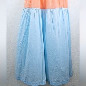 J. Crew Colorblock Tie Back Cotton Tiered Spaghetti Strap Maxi Dress.