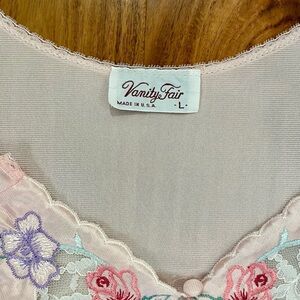 Vanity Fair Vintage Women’s Silk Nightgown Pink Embroidered Lace Trim Size Large