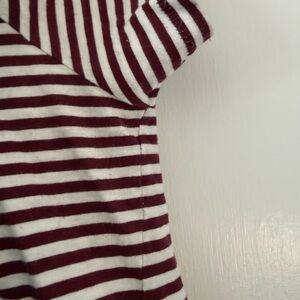 Levi’s maroon striped cropped t-shirt, a classic casual staple in size medium. Soft, lightweight fabric with a flattering cropped fit—perfect for pairing with high-waisted jeans, shorts, or skirts.
