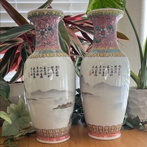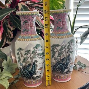 Chinese Porcelain Vintage Hand Painted Vases Set of 2 Excellent Condition